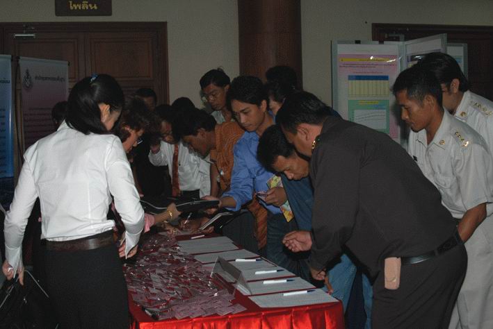 บรรยากาศการลงทะเบียน และการจัดนิทรรศการบริเวณหน้างาน