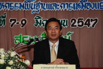 นายอนุสรณ์ เนื่องผลมาก อธิบดีกรมอุตสาหกรรมพื้นฐานและการเหมืองแร่ ให้เกียรติเป็นประธานกล่าวเปิดการอบรม พร้อมบรรยายเรื่อง "นโยบายกรมอุตสาหกรรมพื้นฐานและการเหมืองแร่ต่ออุตสาหกรรมเหมืองแร่" |