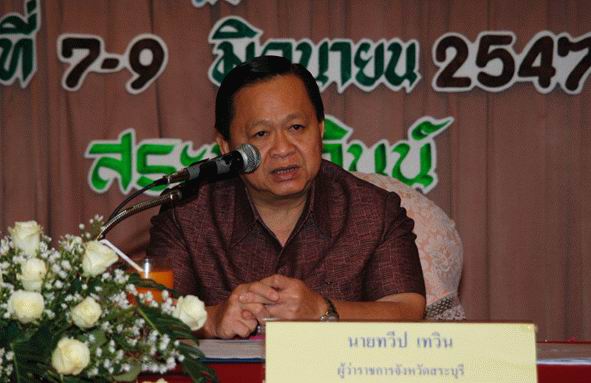 นายทวีป เทวิน ผู้ว่าราชการจังหวัดสระบุรี ให้เกียรติกล่าวต้อนรับผู้เข้าร่วมอบรม และบรรยายสรุปยุทธศาสตร์ด้านแร่ของจังหวัดสระบุรี