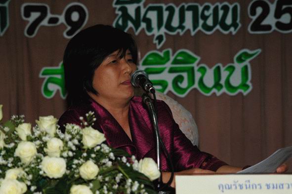 คุณรัชนีกร ชมสวน ผู้แทนสำนักโรคจากการประกอบอาชีพและสิ่งแวดล้อม ให้เกียรติบรรยายเรื่อง "บทบาทของสถานประกอบการในการดูแลสุขภาพคนงาน"
